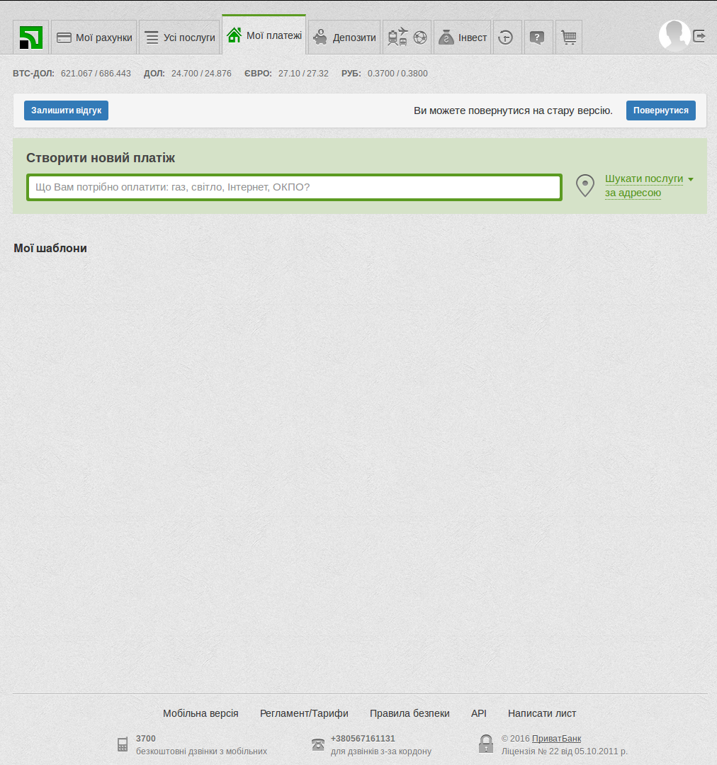 1. Після авторизації в сервісі оберіть вкладку "Мої Платежі".