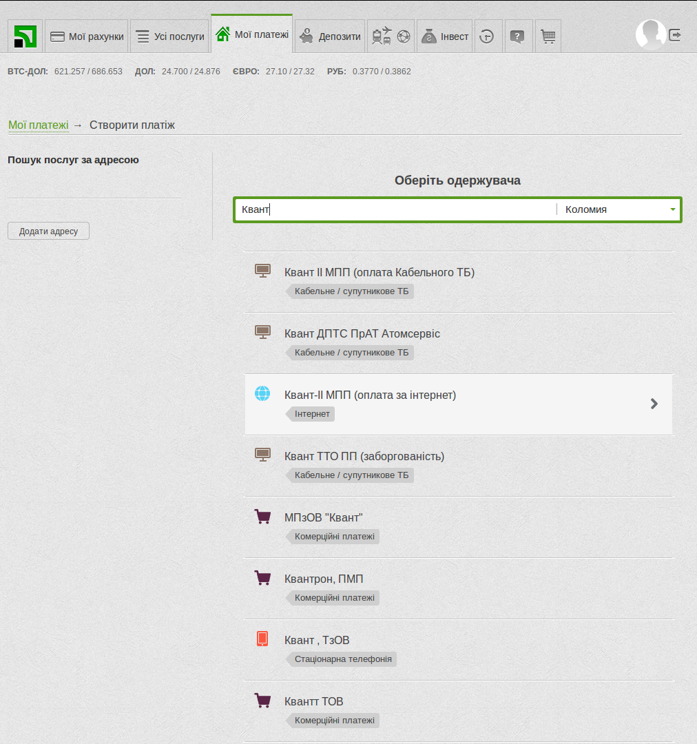 Серед результатів пошуку оберіть "Квант-ІІ МПП (оплата за інтернет)".