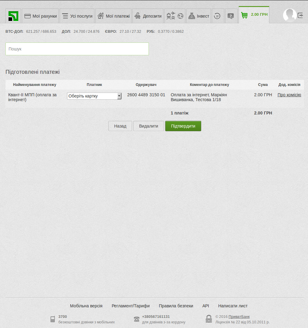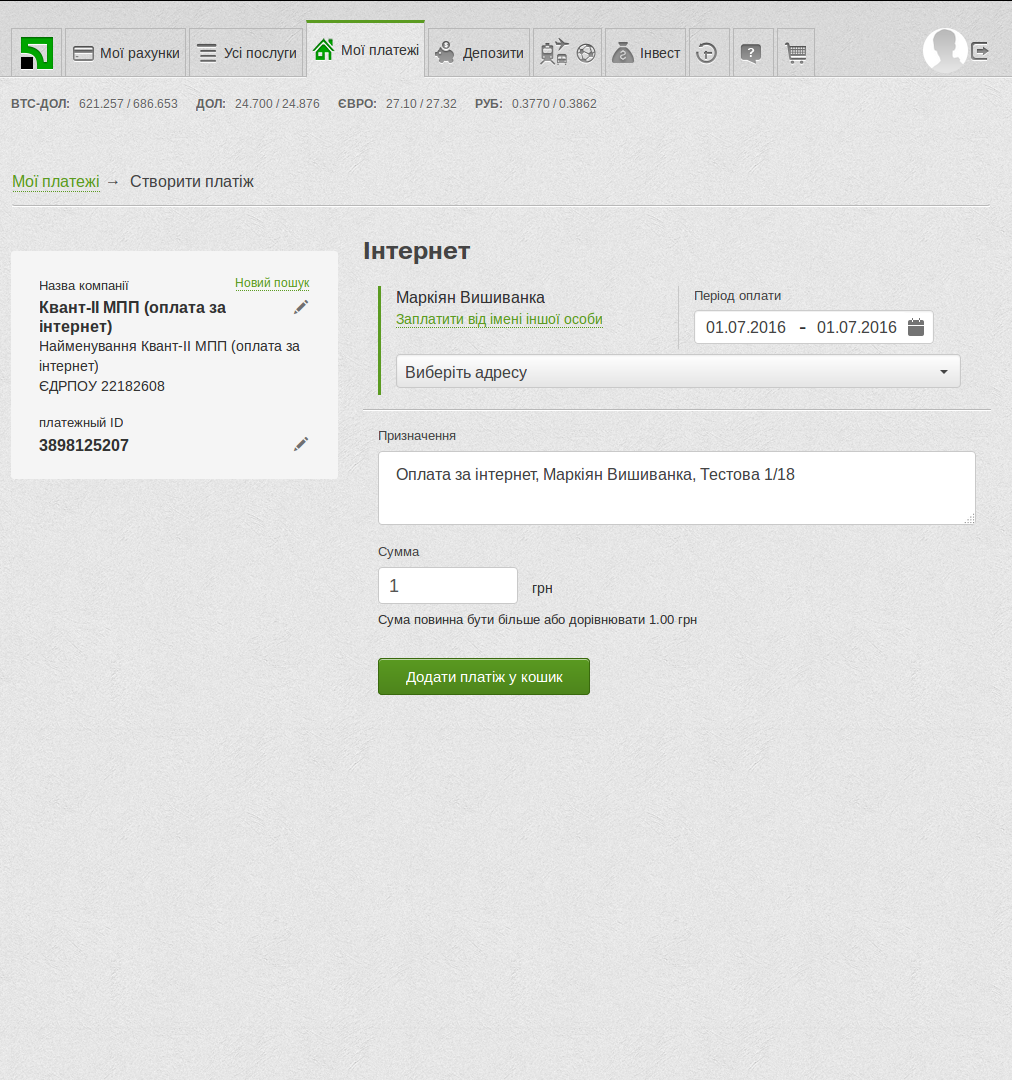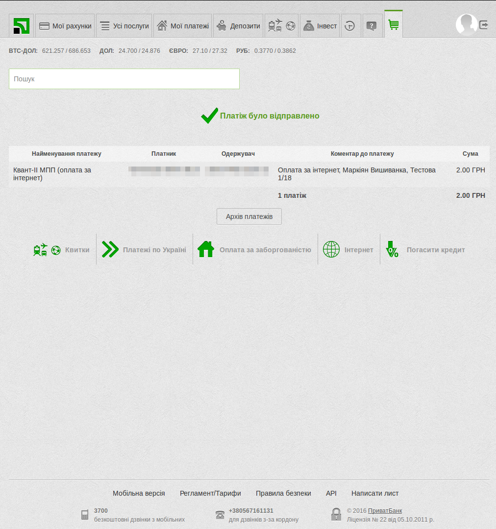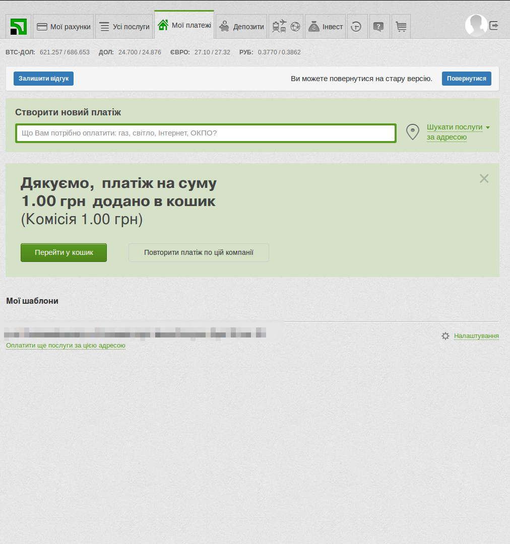 Ваш платіж буде зараховано на ваш рахунок протягом декількох секунд.